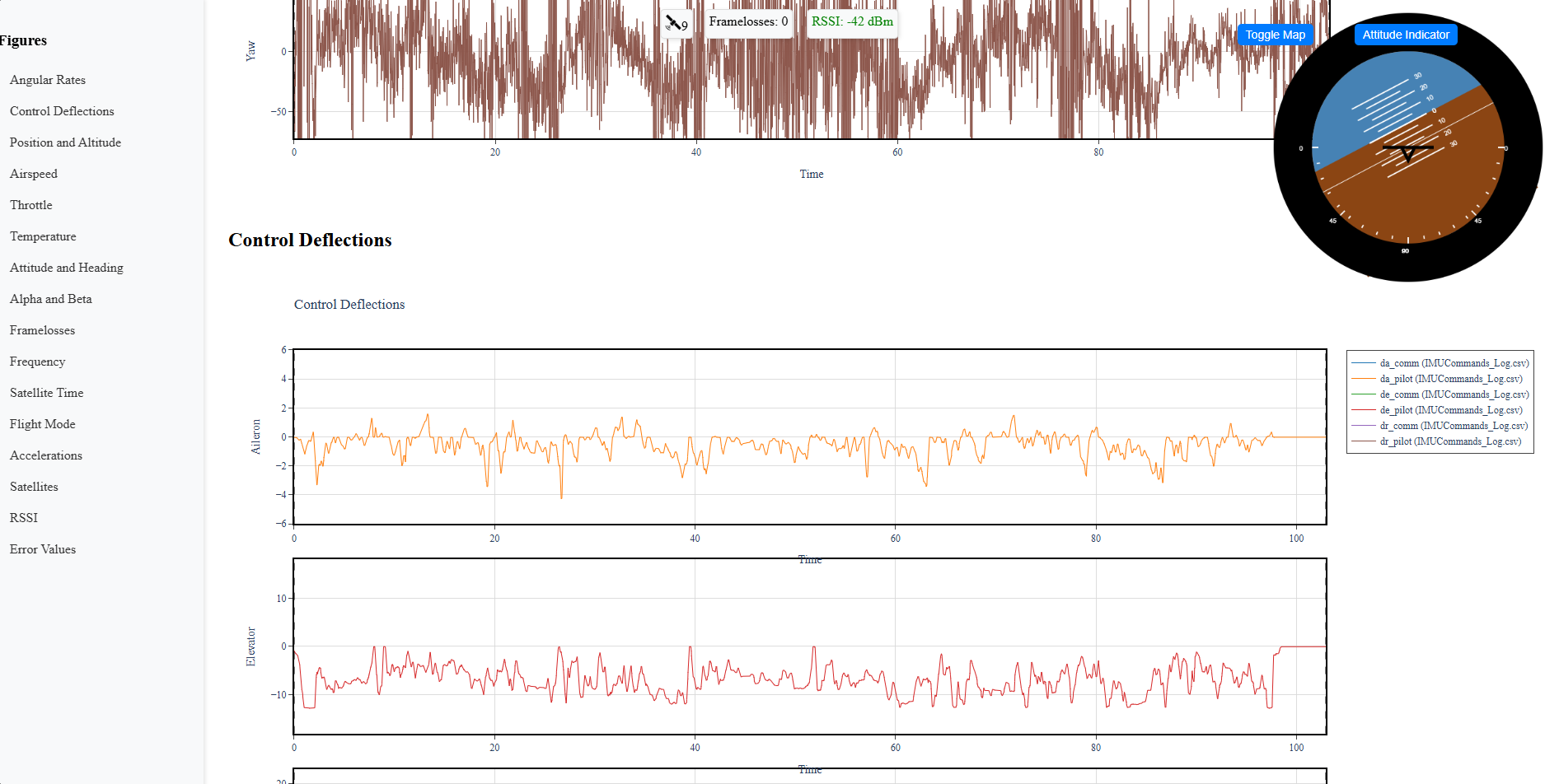 Developed a Python tool to automatically parse flight datalogs and generate a self-contained, interactive HTML dashboard. Features include cursor-linked plots, a live attitude indicator, and a flight path map for rapid analysis.